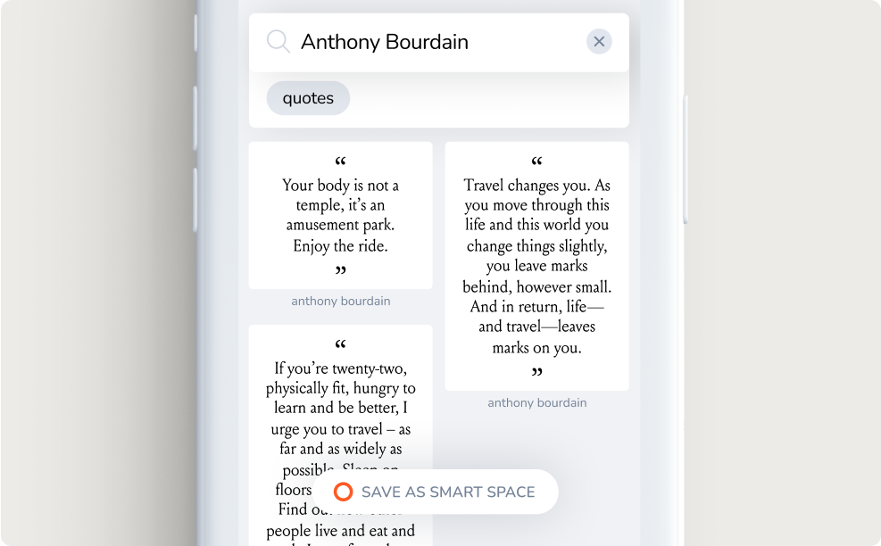 Search “highlights” or “quotes” and save it as a space. Or search #lifeadvice and save every card with that tag in its own space.