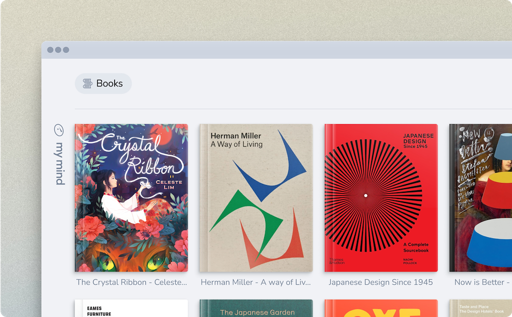 Books you save from Amazon, Goodreads and other major book sellers now show up as beautiful new book cards inside your mind.