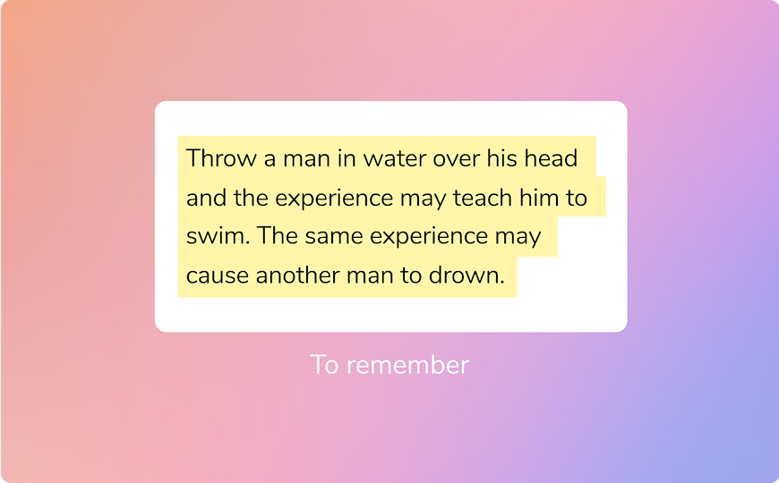 With the mymind browser extension or mobile app installed, you can save quotes, feedback, notes or any other text to your mind without losing focus.