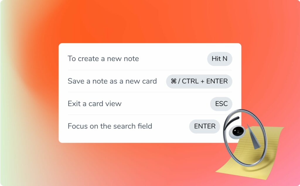 - Save a note as a new card: ⌘ / CTRL + ENTER