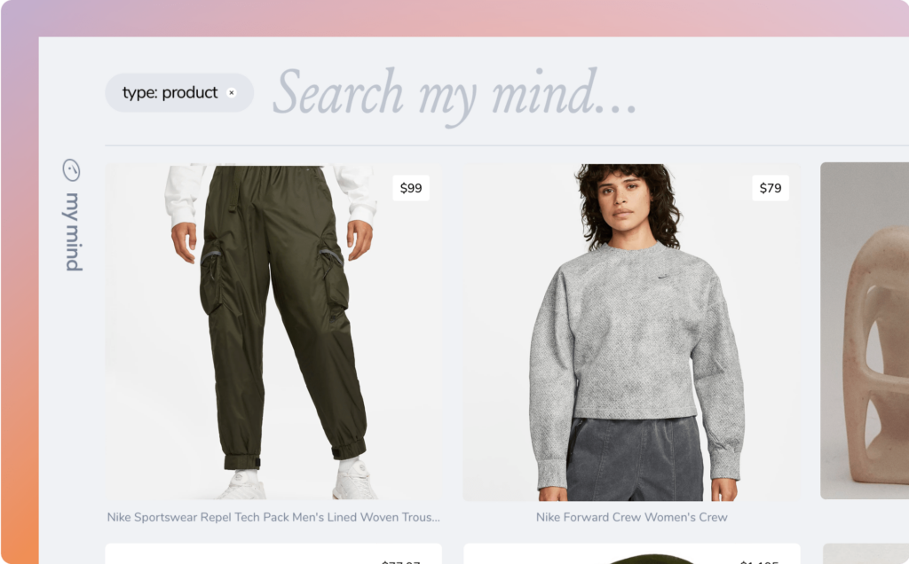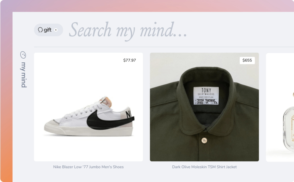 You can also use mymind to remember gift ideas for yourself. Just save the link and it will show up as a product in your mind. A quick type:product search will reveal everything on your wishlist.