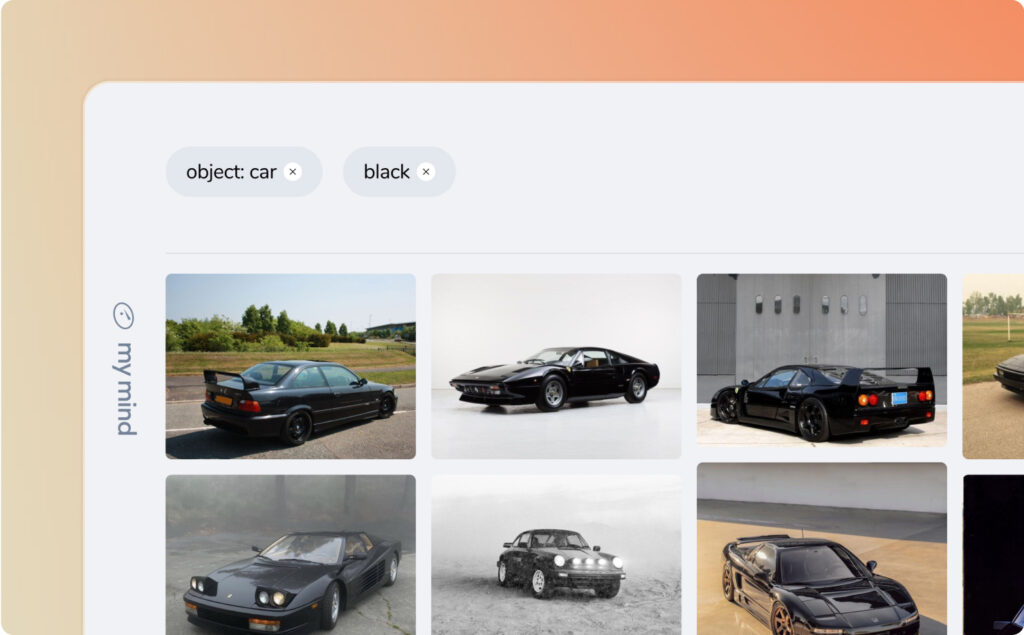 When you're ready, search your mind by theme, color, object, tag or category to instantly curate endless moodboards. By simply searching “green” you have an instant moodboard around the color. Add the word “couch” or “car” to that search, and you have a whole different board.