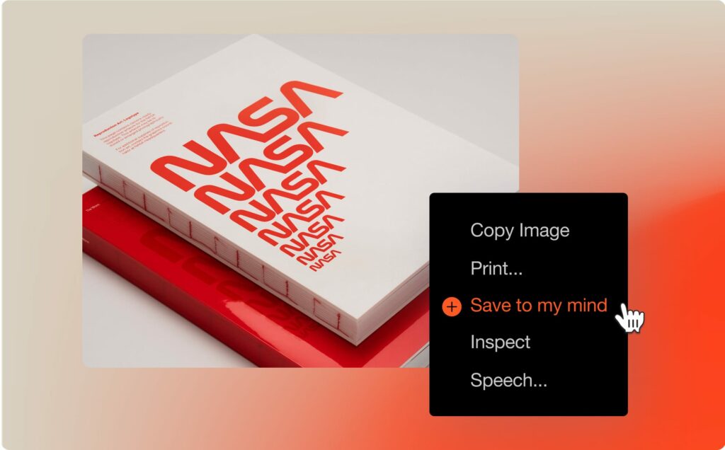 With mymind, you can save all your visual inspiration in one place. You don’t need to organize it because your mind does it for you. Your real brain can keep moving without interruption, opening you up to even more beauty and ideas.