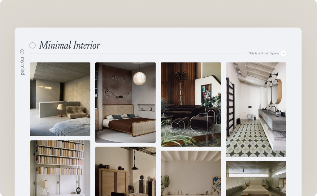 But unlike drawers (or folders, or buckets, or however you visualize your collections) you don’t have to create Spaces manually in mymind. Your mind does it for you.