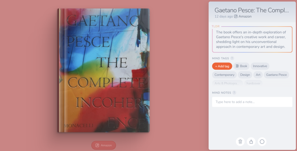 To find this book later in your mind, search "Gaetano" or "Pesce" or simply "books."