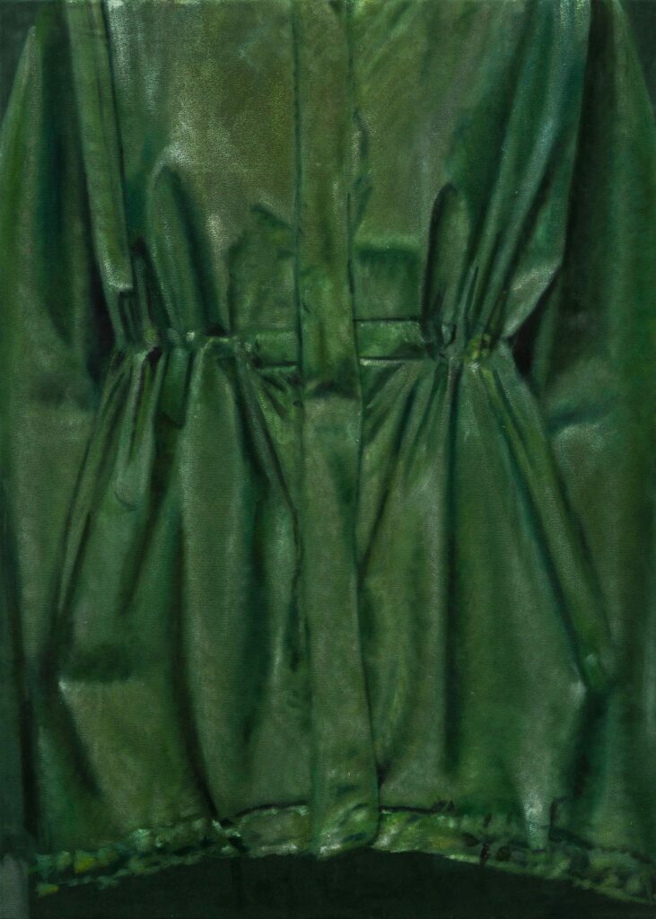 A few years ago, I corresponded briefly with the English painter Issy Wood. I discovered her via Real Review magazine, and thought she had the funniest and most charming essay. Her early works feature tightly cropped coats and jackets made from nylon and leather. And I love the way she lays down paint. For me, it is a perfect combination of subject matter and technique. We discussed exchanging a Neotenic Chair for a small painting, but the conversation ended prematurely, and now I’m not sure we could afford her work today (hiiii Issy!).