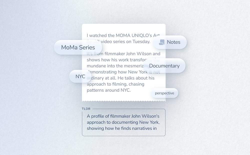 Your mind now enriches your notes with automatic tags and summaries that expand and deepen the context, making them easier to find later.