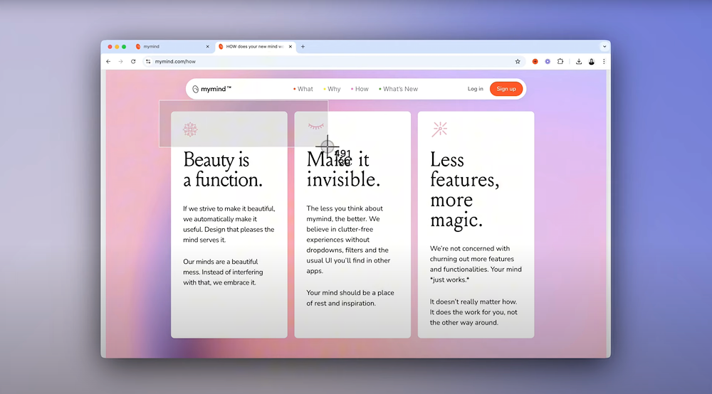 Right click an image to save it to your mind. On mobile, long press and share it to the mymind app.