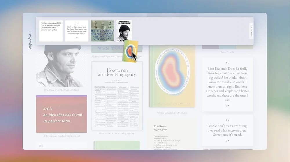 Right click an image to save it to your mind. On mobile, long press and share it to the mymind app.