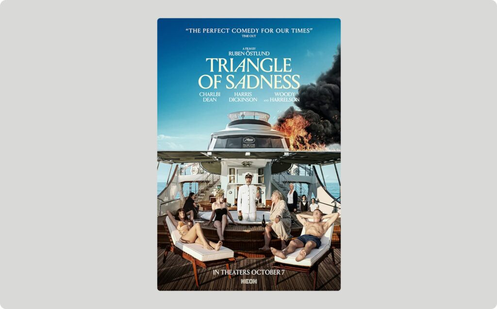 So blatant you can barely call it satire, “Triangle of Sadness” critiques consumerism and social class in a funny, unexpected tale of a luxury cruise gone wrong.