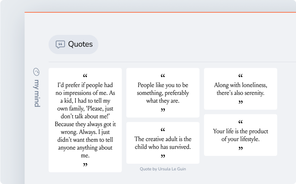 If mymind were only a quote library, we'd still be in there every day for inspiration and energy. But of course, quotes are just one of many things you can save as you build your beautiful mind.