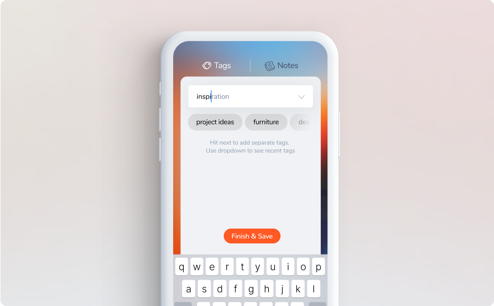 ✦ You can add additional tags or notes to screenshots while saving them to add context and more easily find it later.